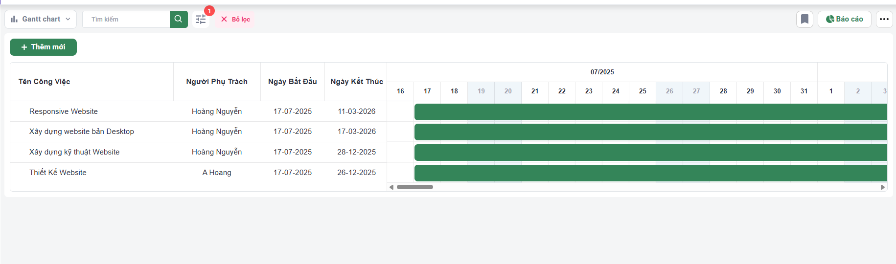 - Nếu bạn đang quản lý nhiều nhóm hoặc nhiều thành viên nhóm , biểu đồ Gantt với các mốc thời gian chung sẽ giúp bạn hiểu rõ ai đang làm việc gì.