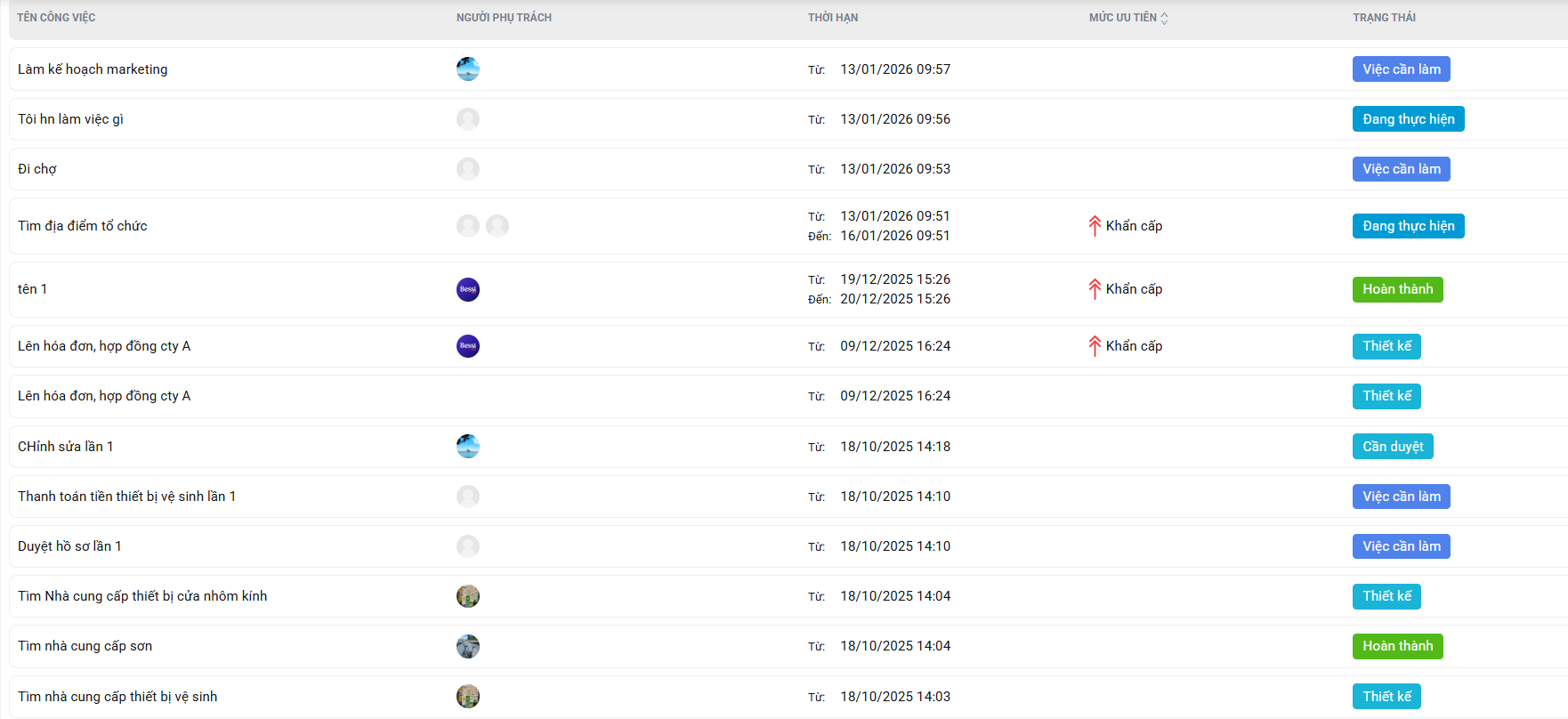 1. Danh sách nhiệm vụ